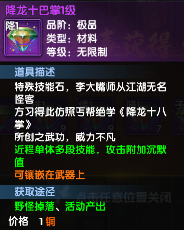 珍宝阁可以购买绝技石碎片,每日限购5个,20个碎片可合成绝技宝匣,打开随机获取一种武林绝技。